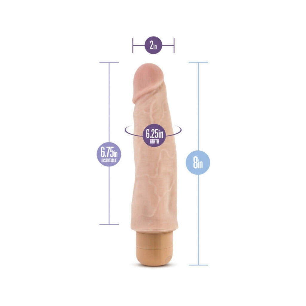 The doctor is in! The Dr. Skin Vibe 14 is a thick, realistic vibrator that aims to fulfill all your size fantasies. Its soft, veiny shaft delivers a lifelike look and feel. The twist-dial base is splashproof for easy cleaning. Vibe 14 is made of body safe, phthalate-free PVC. Requires 2 AA batteries (not included).