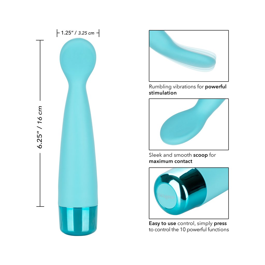 Indulge in a pleasure paradise with the sensational Eden Scoop. This enchanting vibe features a full contact scoop, flexible design and 10 powerful functions of vibration. The contoured teaser tip and flexible shaft are perfect for enveloping sensual sweet spots. For an ultra smooth surface and flexible body, the marvelous massager is covered in a premium silicone. Indulge in personalized pleasure while the curved massager pulses to the rhythm of 10 vivacious vibration, passionate pulsation and erotic escalation. Control this variety of orgasmic options with the easy-touch control button on the base of the massager. Whether you're taking a dip with a lover or indulging in a steamy solo session, look forward to up to hours of waterproof vibration. Power up your pleasure vibe with 2 AAA batteries. The flexible massager is made from a hygienically superior silicone. This body safe material is unscented and phthalate free to keep your most sensitive spots happy and healthy. One Year Warranty.